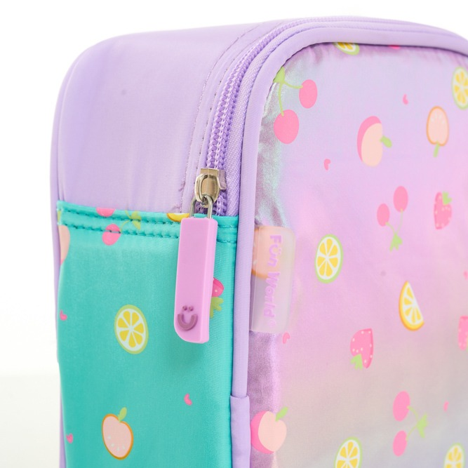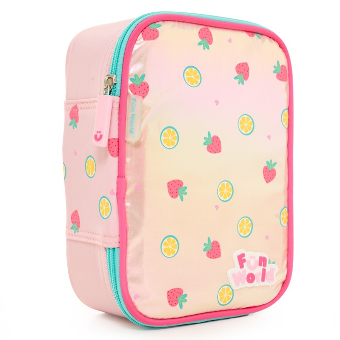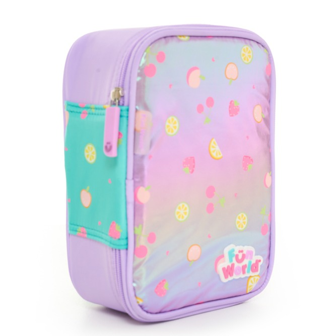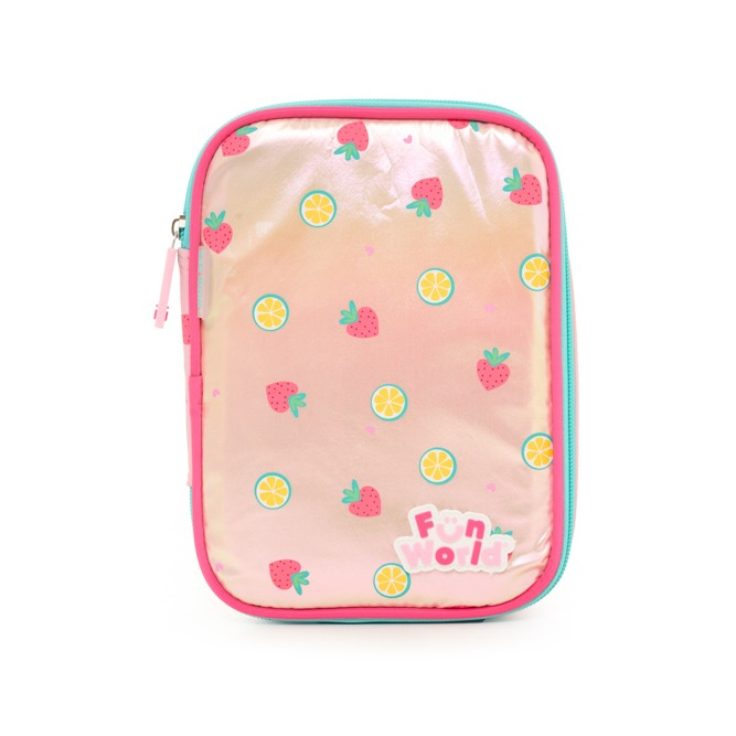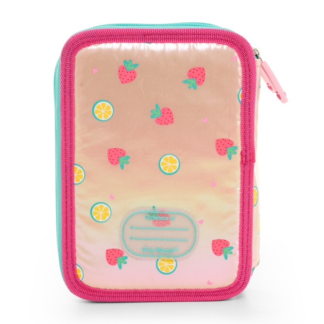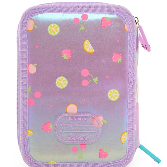 Cartuchera Fresh Rectangular Moderna y brillante, confeccionada en textil holográfico impreso que la hace destacar por su estilo único. Cuenta con 28 elásticos regulares y bolsillo de red para una organización práctica y ordenada. Disponible en dos colores, es ideal para llevar tus útiles con un toque de color y diversión.