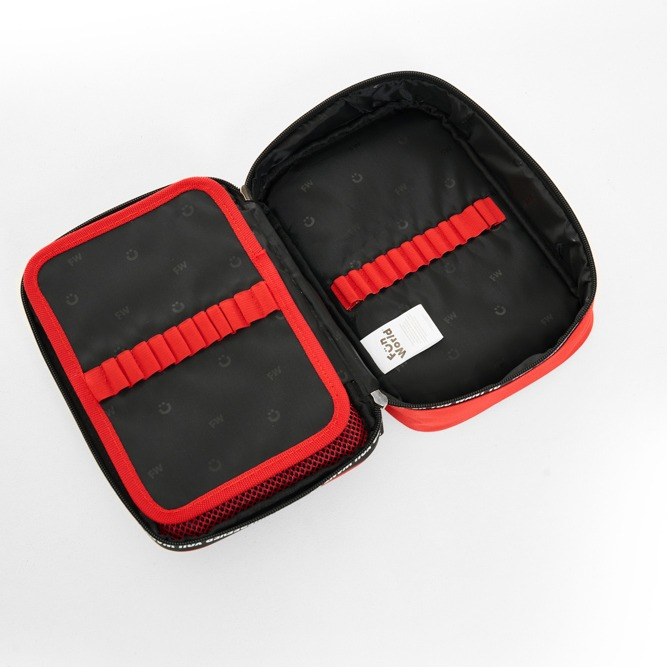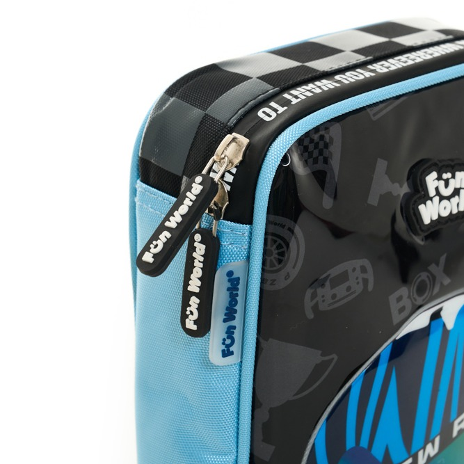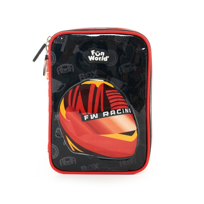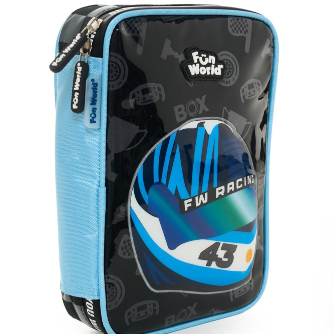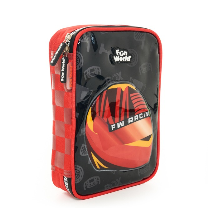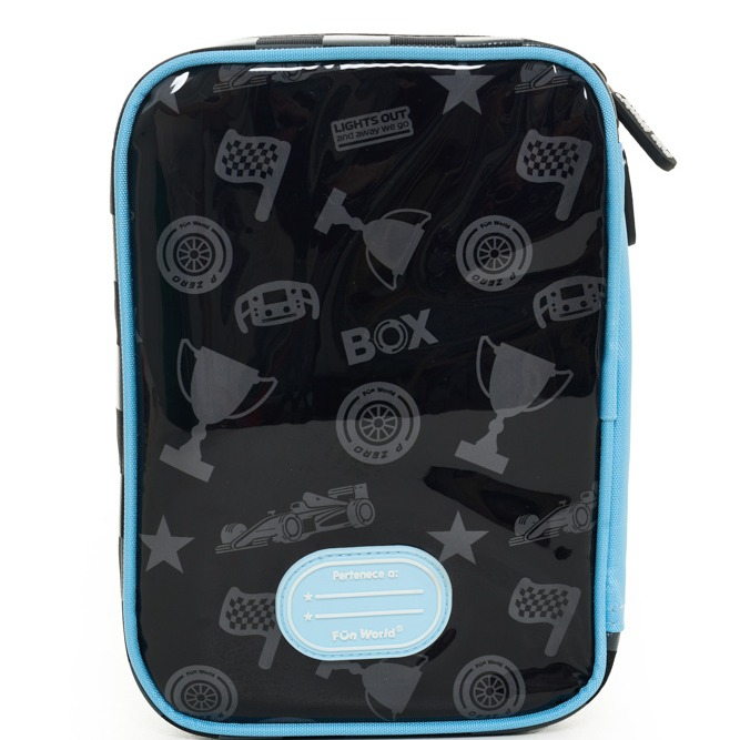 Cartuchera Race Rectangular Moderna y funcional, confeccionada con detalles deportivos y dinámicos. Cuenta con 36 elásticos regulares y bolsillo de red para una organización práctica, parche de PVC impreso, name tag, y cierre de goma impreso con diseño y doble tirador. Disponible en dos colores, es ideal para quienes buscan estilo y organización en un solo accesorio.