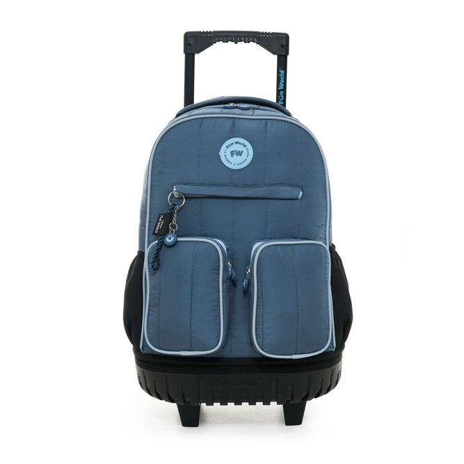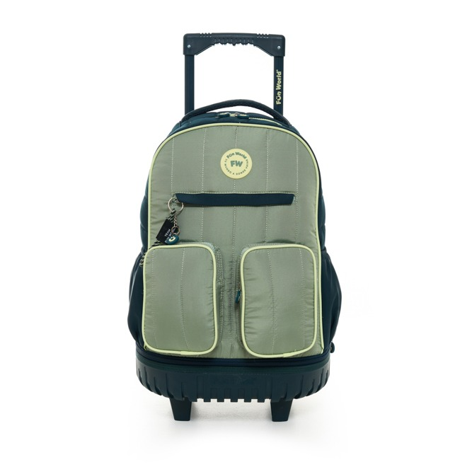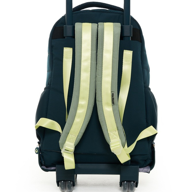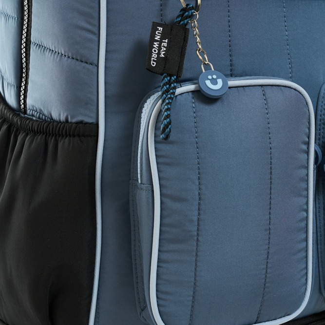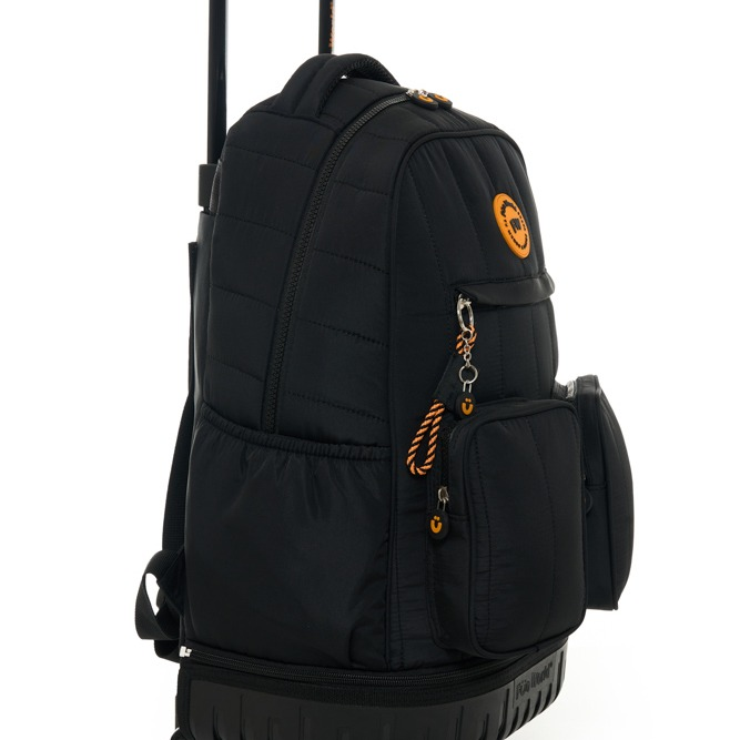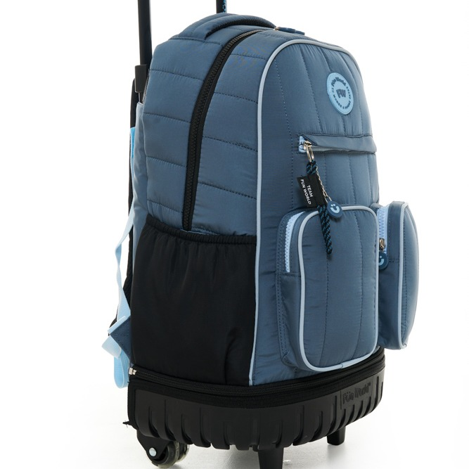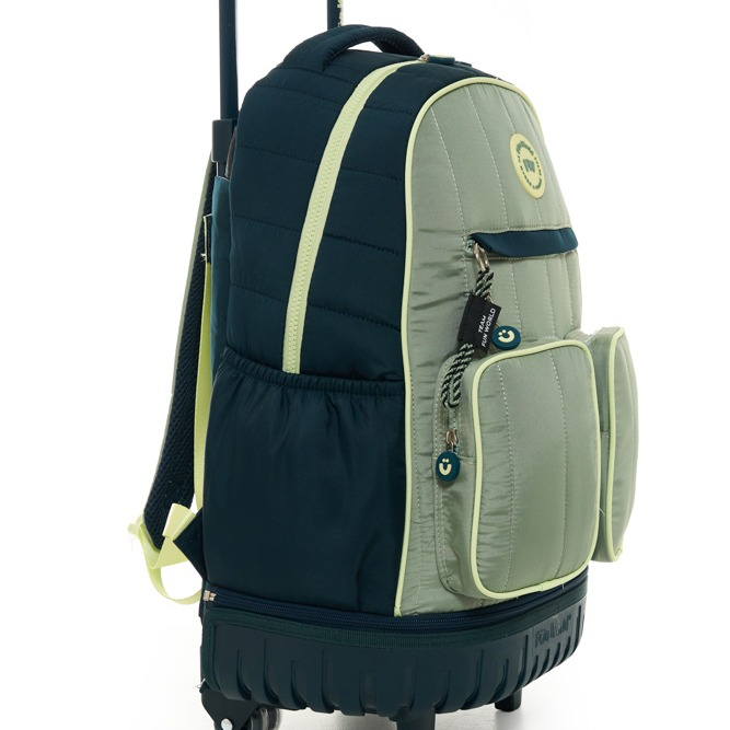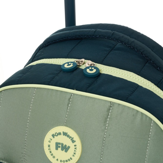 Mochila con carro 18” Squad Confeccionada en tela matelassé, combina textura y estilo en un diseño funcional y moderno. Incluye llavero a tono, varios compartimentos y bolsillos, y dos bolsillos laterales para colocar la botella. El carro es desmontable y reforzado, con dos pares de ruedas dobles que aportan mayor estabilidad y resistencia. Disponible en tres variantes de color: azul, verde y negro. Ideal para acompañar a los niños cada día con comodidad y organización.
