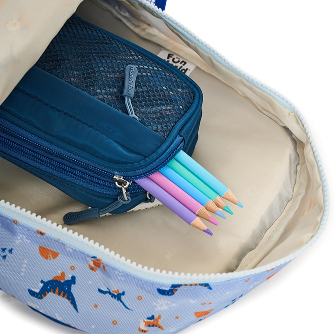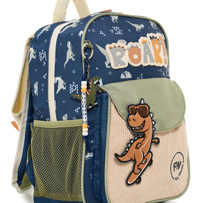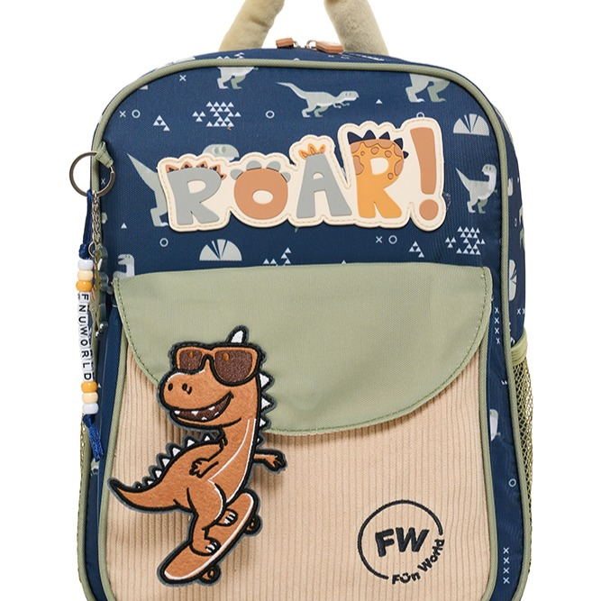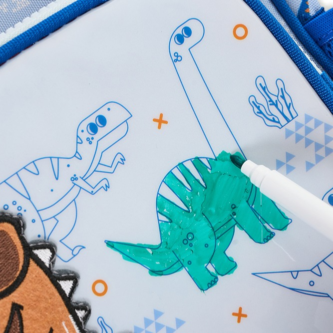 Mochila 12” Kinder Roar Divertida y original, pensada especialmente para los más chicos. Presenta dos variantes de diseño: el modelo color azul incluye un bolsillo para pintar y marcadores para colorear, mientras que el diseño color verde cuenta con una capucha de dinosaurio. Tiene correa de pecho ajustable, que aporta mayor sujeción y comodidad al usarla. Ideal para acompañar sus días de juego con creatividad y diversión.