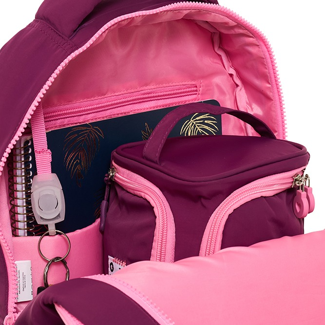 Mochila Sugar Diseñada para combinar estilo y funcionalidad en el uso diario. Cuenta con un compartimento principal con bolsillo interno para notebook, bolsillo con cierre y clip para llaves, además de un segundo compartimento frontal. Incluye dos bolsillos frontales con cierre, bolsillos laterales ajustables y dos bolsillos para colocar botellas. Su espalda acolchada brinda mayor confort. Acompaña un llavero de goma y metal. Disponible en tres variantes de color: lila, rosa y bordo.