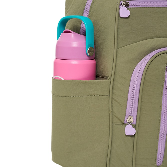 Mochila Sweet Práctica y funcional, ideal para acompañar el día a día con comodidad y estilo. Cuenta con un compartimento principal con bolsillo interno para notebook, bolsillo con cierre y clip para llaves, tres bolsillos frontales y dos bolsillos laterales. Su espalda acolchada garantiza mayor confort. Disponible en tres variantes de color: verde, azul y rosa.