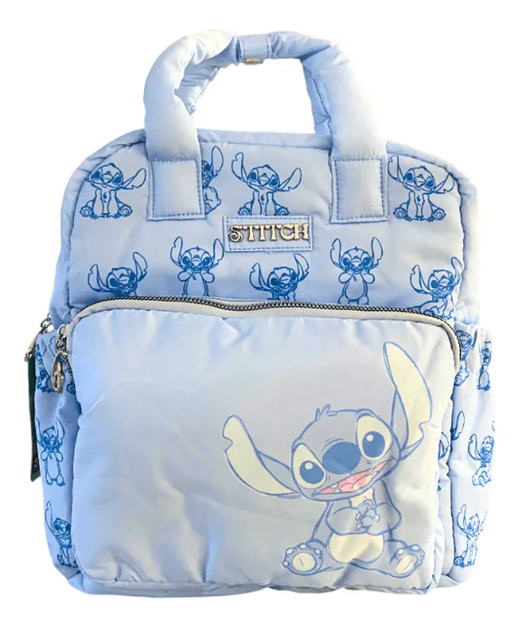Diseño de la tela: Stitch Puffer. Capacidad de la mochila: 12 L. Tipo de mochila urbana ideal para uso diario. Material de poliéster reforzado para mayor durabilidad. Profundidad de 12 cm, adecuada para llevar lo esencial. Tres bolsillos para una organización óptima. Presenta un bolsillo lateral para botella.