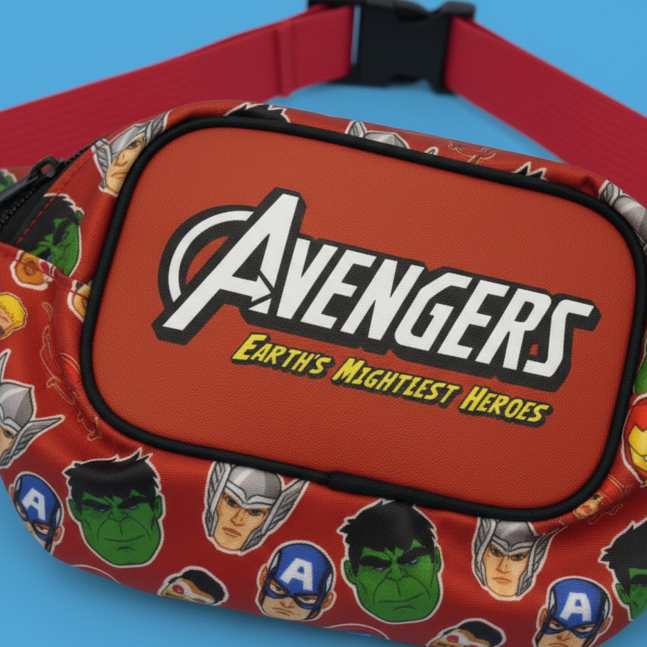 Riñonera infantil con diseño de Avengers. Ideal para llevar pequeños objetos de forma cómoda y segura. Ajustable a la cintura.