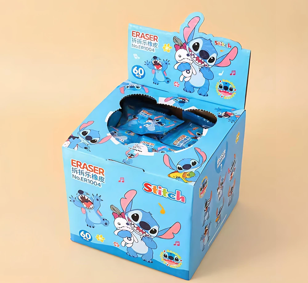 Goma para borrar en paquetitos individuales, cada uno tiene diferentes motivos de Stitch