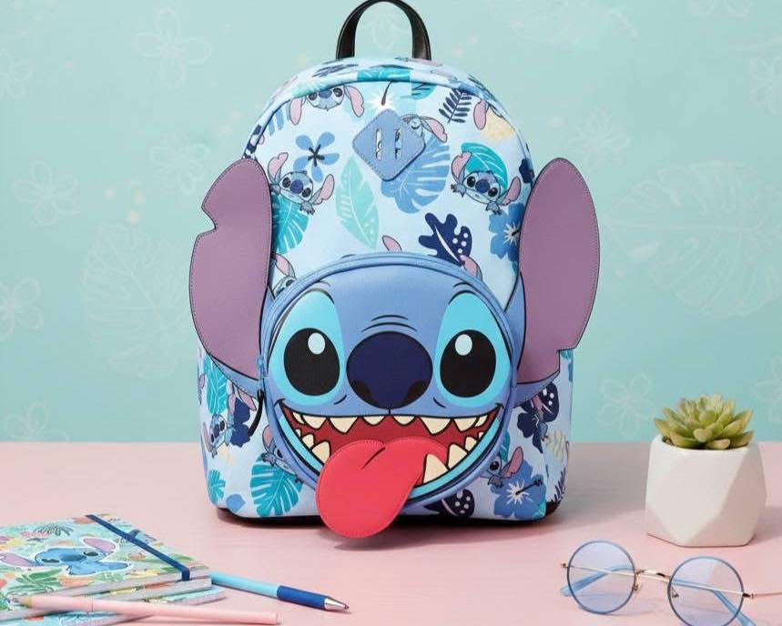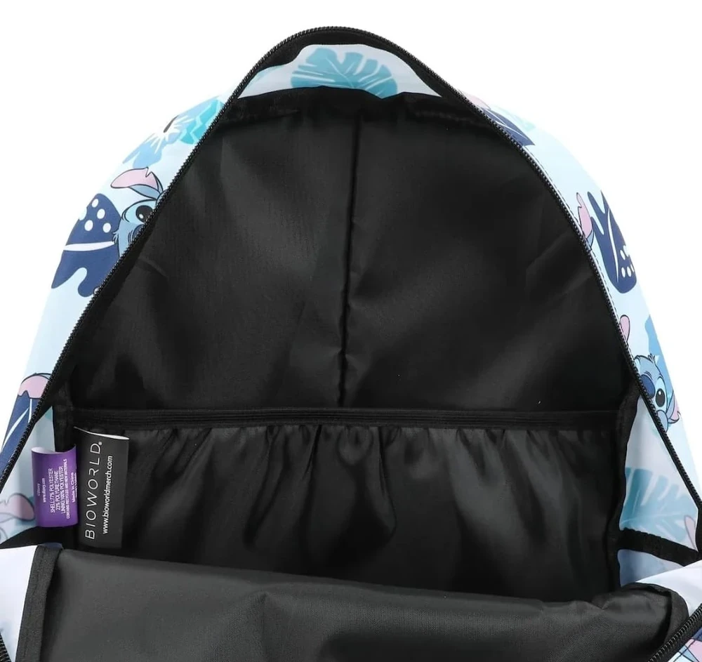 Mochila Infantil de Stitch. Cuenta con bolsillo delantero, dos laterales y uno interno