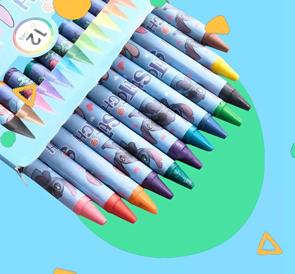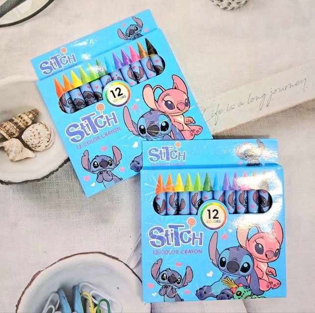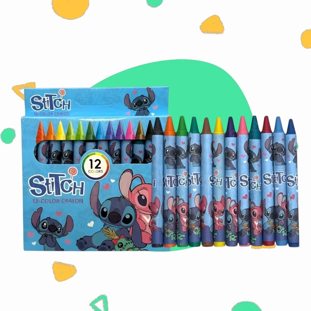 Cada set trae 12 crayones de colores con la temática de "Stitch" . Ideal para esta vuelta al colegio