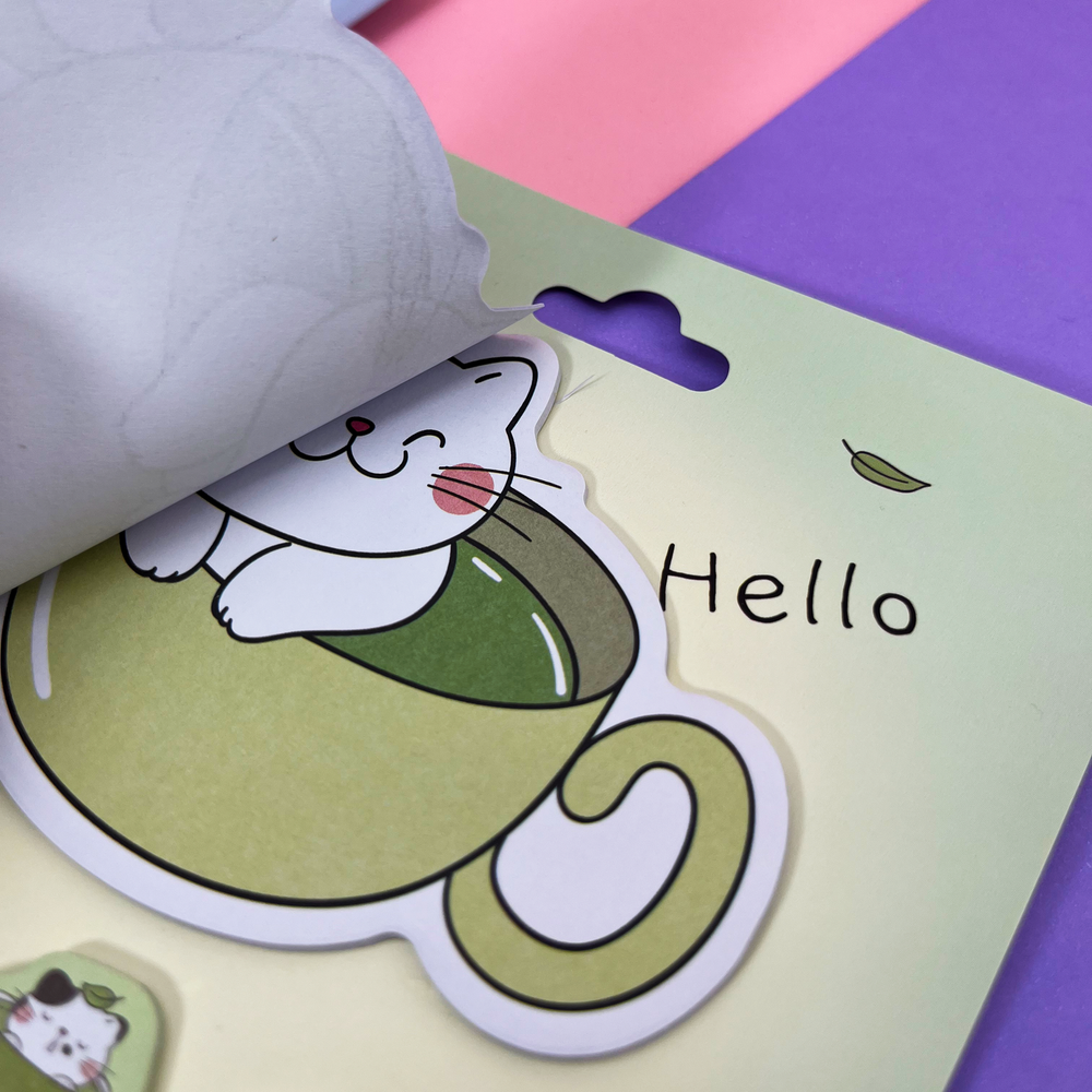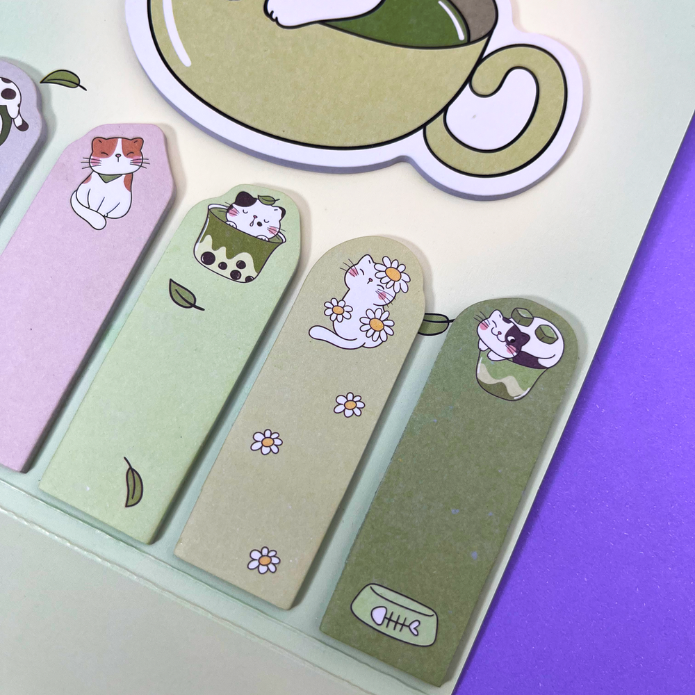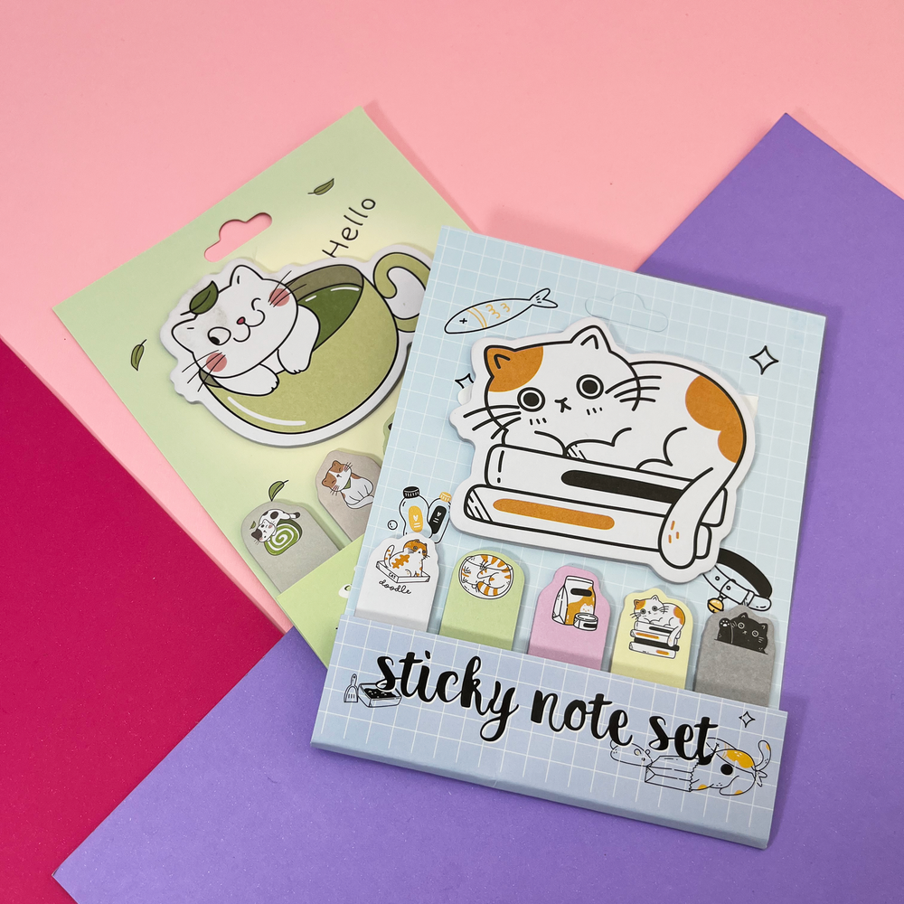 Pack de 6 post it con diseños de gatitos, cada uno con 20 hojas