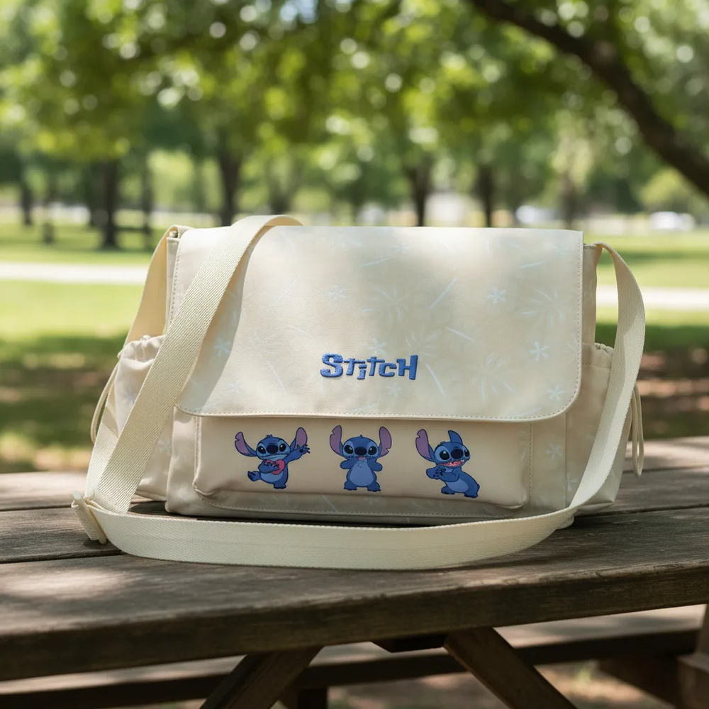 Bolso disney con diseño de stitch en color beige.