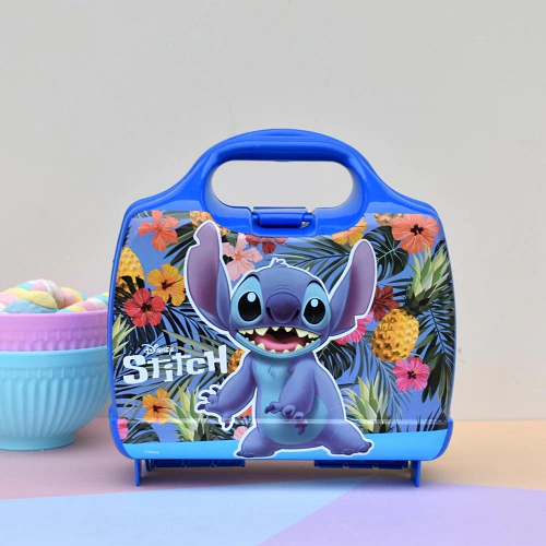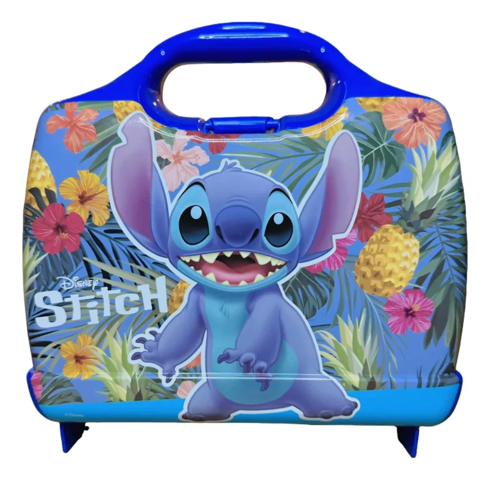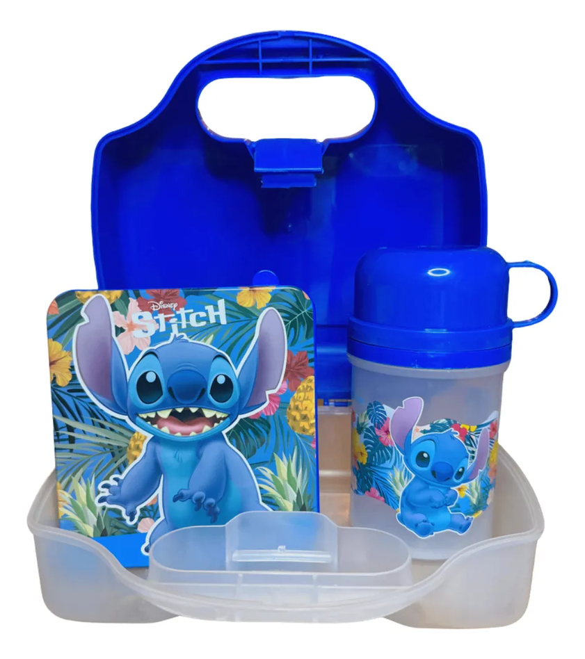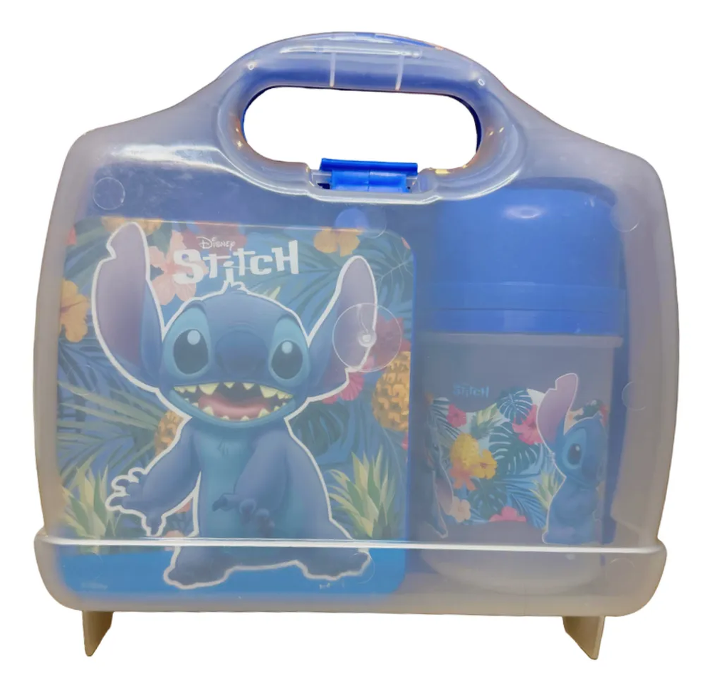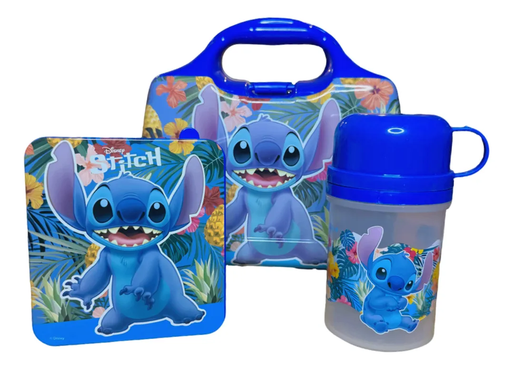 Set infantil que incluye valijita, sandwichera y cantimplora con diseño de Stitch