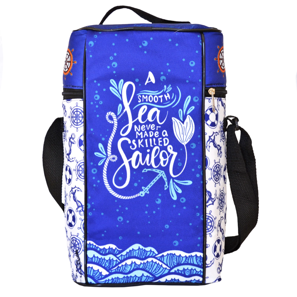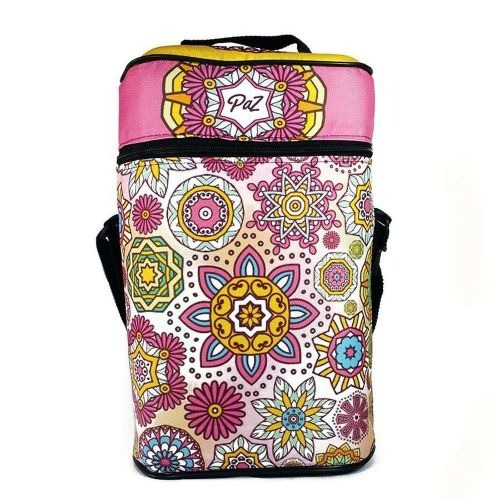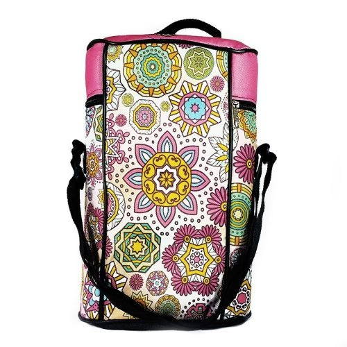 Bolso matero con tira morral para llevar colgado del hombro. El bolso esta fabricado en tres capas: cordura sublimada por fuera, un material semi rigido que le da cuerpo y ayuda a mantener la temperatura dentro del bolso y friselina negra para el acabado interior. No incluye bolsillos ni compartimentos internos. Medidas: 33 cm x 22 cm x 12 cm.