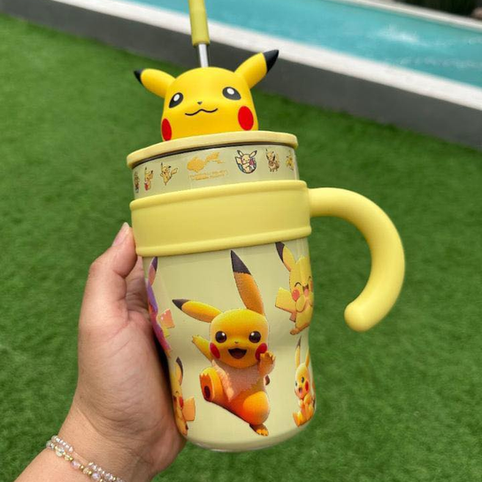 Vaso térmico tipo quecher con diseño y cabeja de personaje 3D