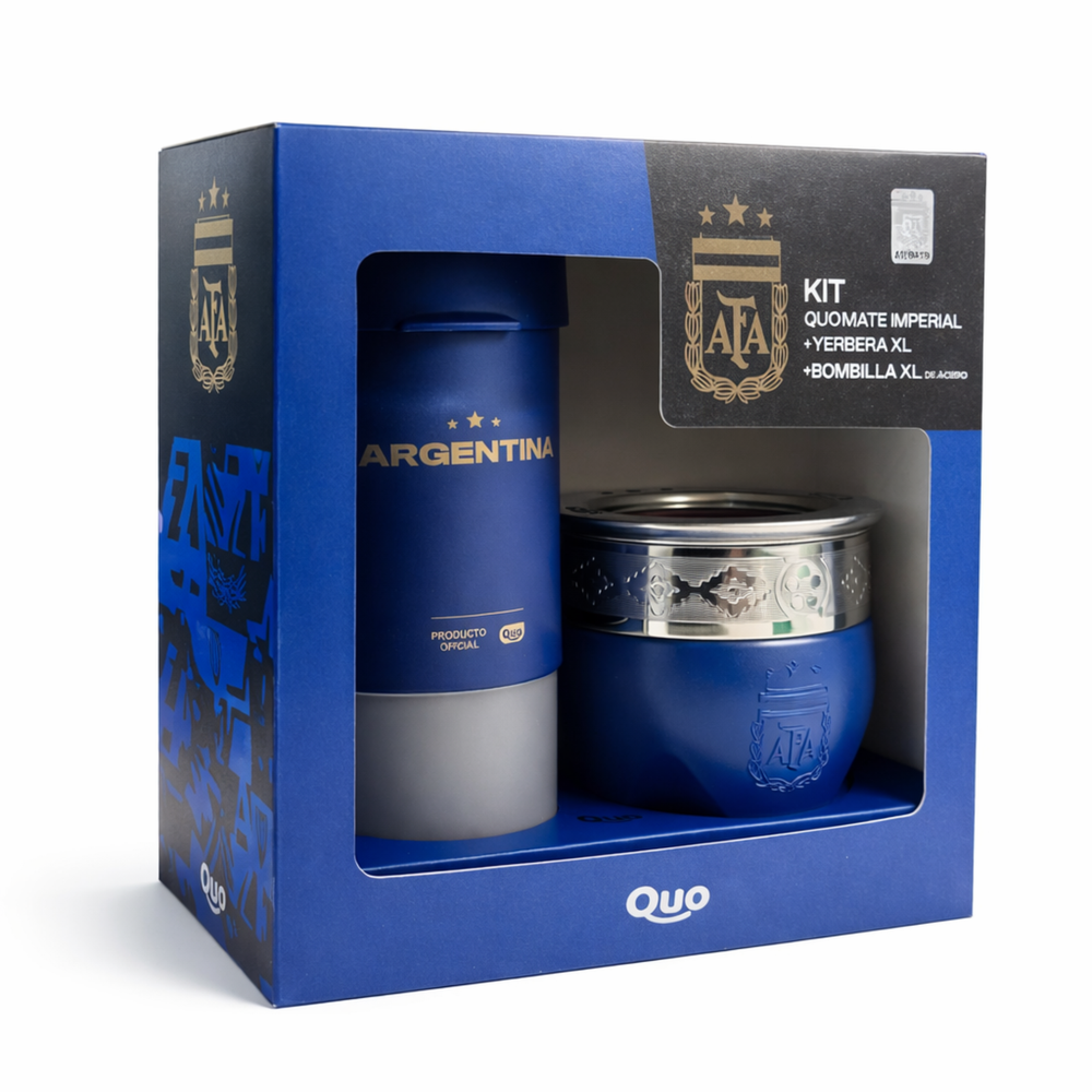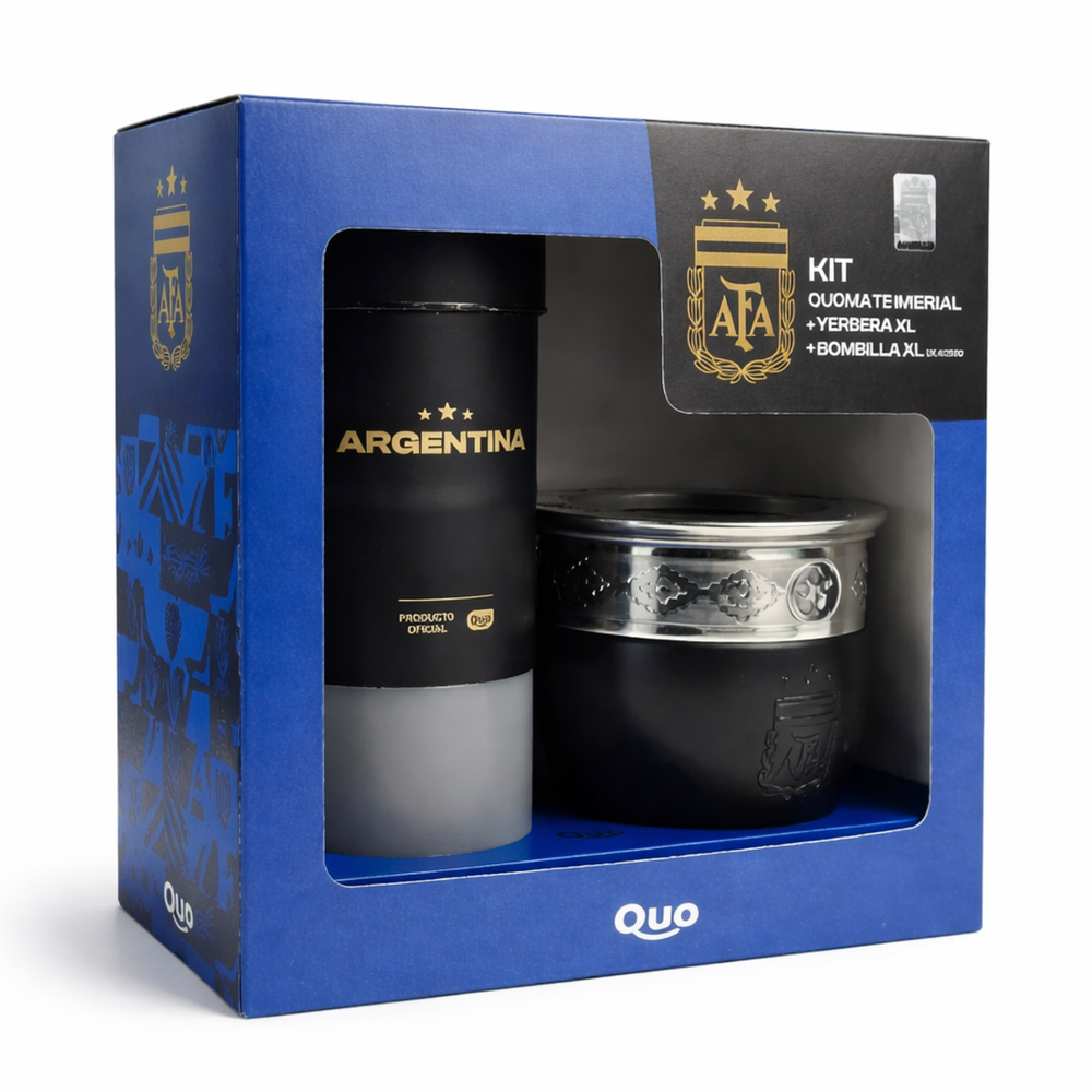 Un set matero con diseño exclusivo, incluye yerbera despolvillador 2en1 de 120 gr de capacidad, un Quomate imperial y una bombilla XL. Todo en un packaging ideal para regalar