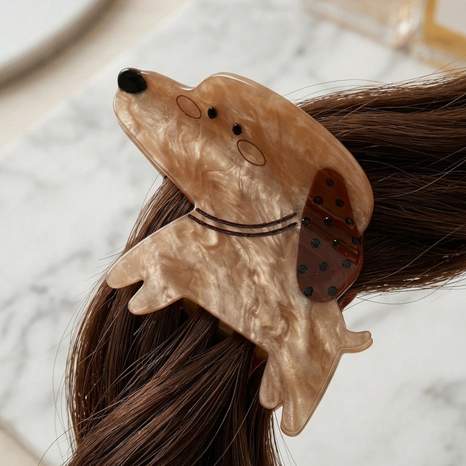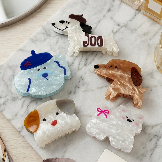 Broche de pelo de plástico con diseños surtidos de perritos y gatitos