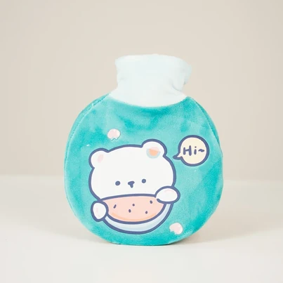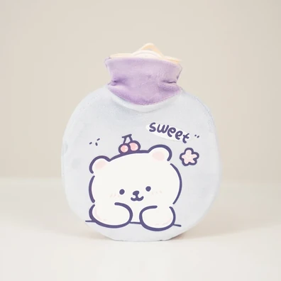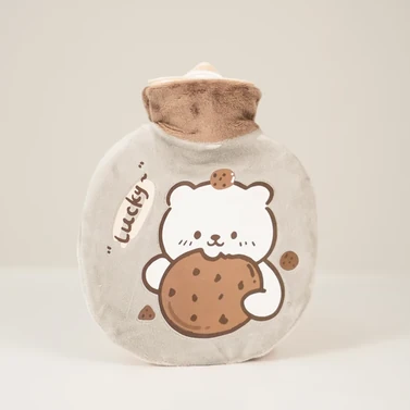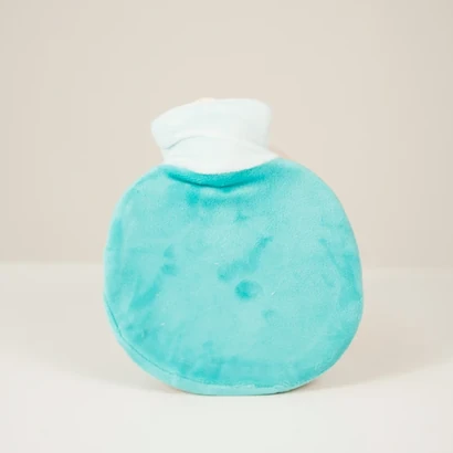 Bolsa de agua caliente plástica con tapon a rosca. Con exterior recubierto por una bolsa de tela suave