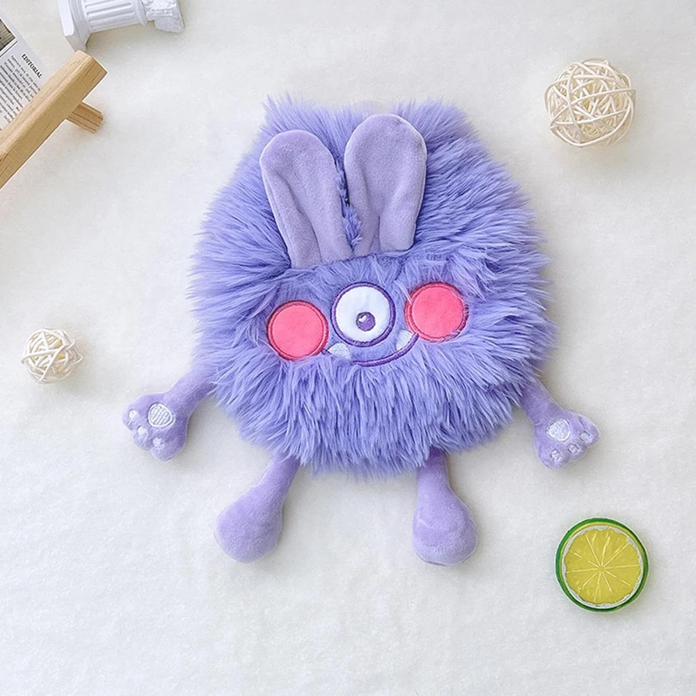 Bolsa de agua caliente plástica con tapón a rosca. Con exterior recubierto por funda de peluche con diseño monstruitos