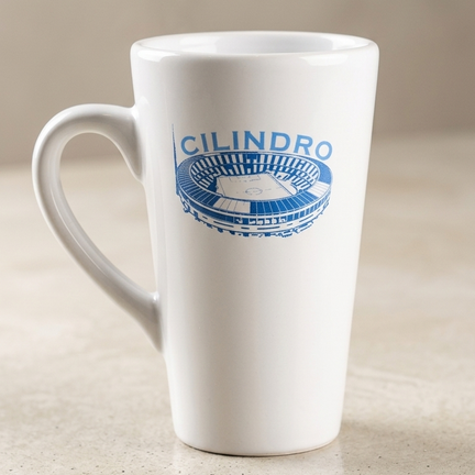 Taza blanca de cerámica con diseño de equipos de futbol